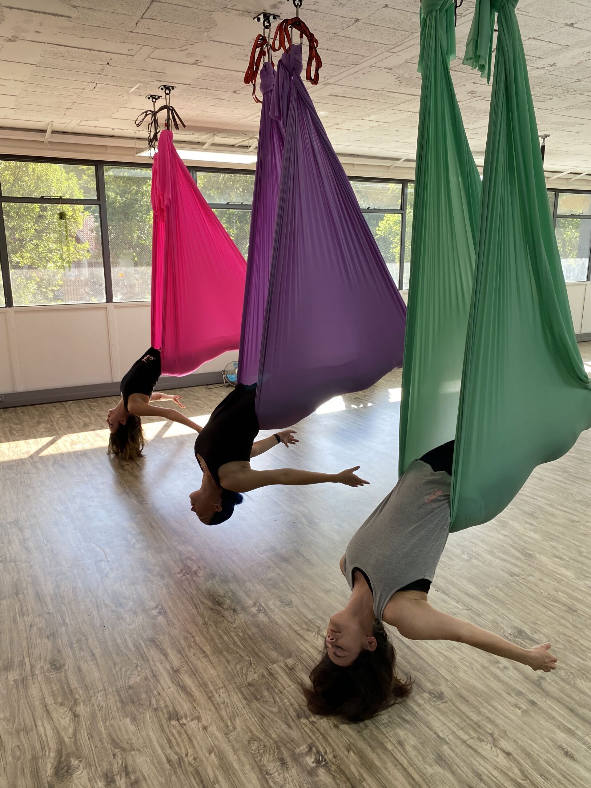 We have three passionate (and patient) aerial yoga instructors who will have you flying without wings in no time.